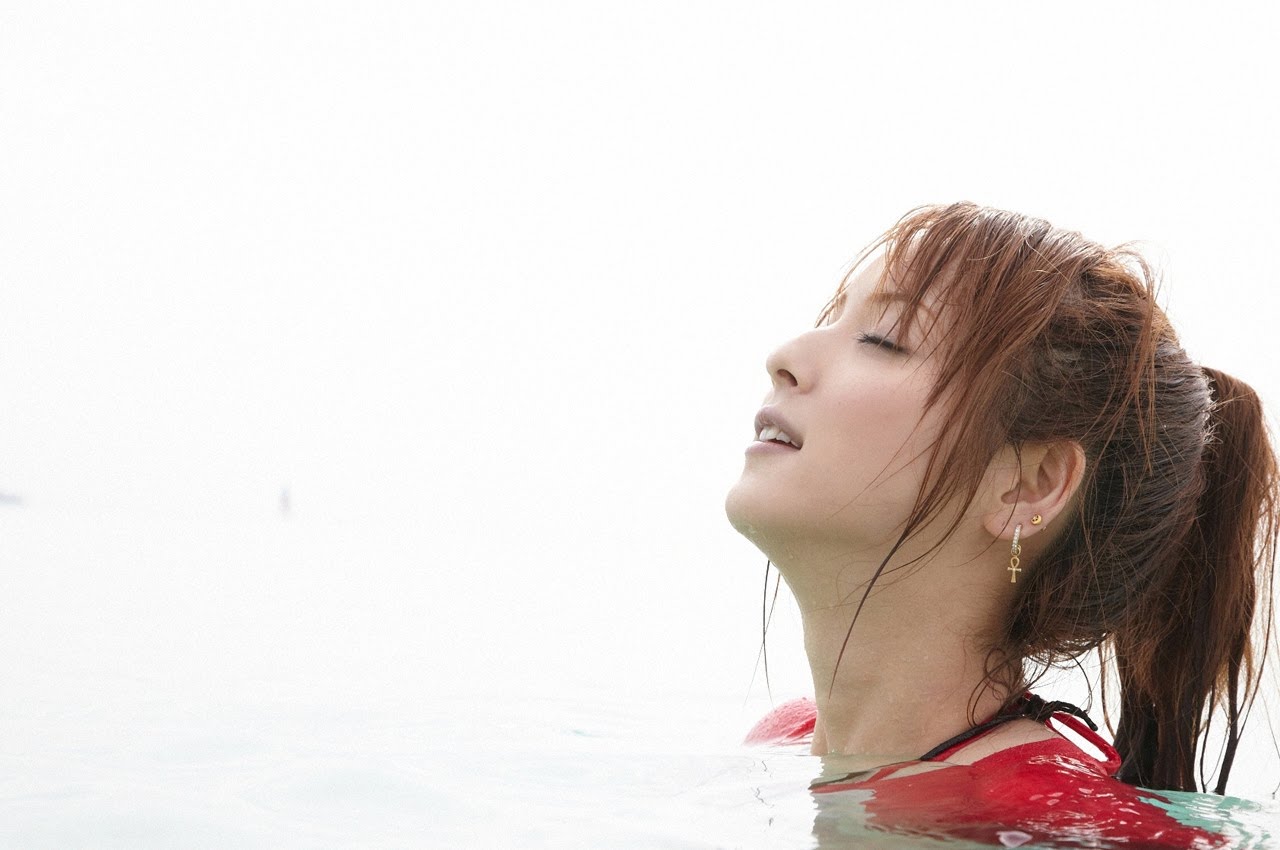 In the boat trip Nozomi Sasaki feel fun to climb into the water.I see her shirt wet and see her bra inside this is a cute moment of her